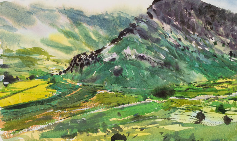 My mind and schedule are busy and paper provides an escape route, hence some of the busiest locations find a spot in this collection. When I am overwhelmed, I first retreat through the beauty in the scenes I see, then I recreate the escape on paper. I am not always looking for beauty but it creeps up on me. For example, the painting Breakfast at Tiffany's is from a moment in Manchester, UK when I looked up from my breakfast plate and the light all around the room was just right - painting the scene before my eyes from warm to cool. What years of painting has taught me is to understand when beauty strikes me, to slow down, take in the scene, and retain it. Every painting is really a story. One drafts it in pencil, but while it's being created the inspiration behind the scene is at the forefront of my mind. How I describe the scene in my head decides how I paint - if there are soft clouds, the strokes are soft, if there is a jagged skyline that is receding, the strokes are jagged with lighter values.
